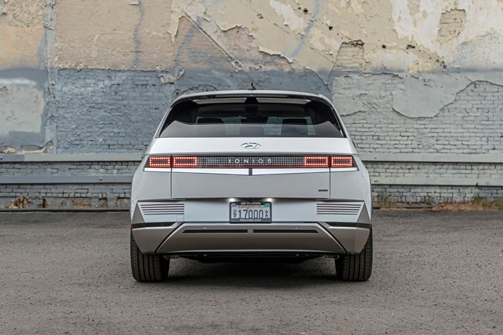 The 2024 Hyundai Ioniq 5 is sized right for adults on both rows. There’s a flat floor, and passenger volume is an ample 106 cubic feet. Cargo capacity starts at 27.2 cubic feet and can expand to 59.3 cu ft.