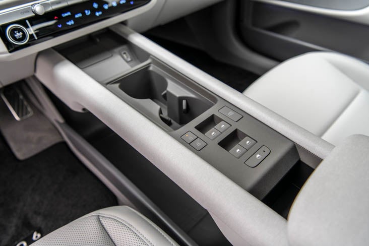 A power driver’s seat with power lumbar is standard. You can beat the heat with dual-zone automatic climate controls, rear vents, and solar glass. Ventilated front seats are available while heated seats are standard Ioniq 6 features.